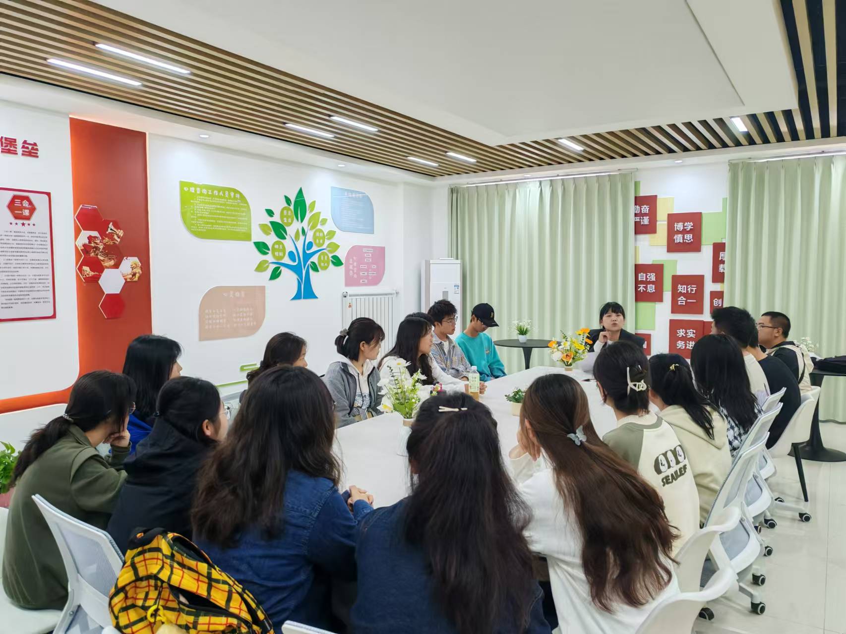 互动环节更是精彩纷呈。“无家可归”游戏让大家在相互团结中体会集体归属感的重要性。游戏结束,同学们表演节目并分享自己的故事和困惑,在交流中互相启发、互相支持。互动游戏则让员工们在轻松愉快的氛围中,学会了团队合作、沟通交流和情绪管理。同时,辅导员商哲组织新生心理委员参观公司心理健康教育中心,亲身体验中心的各个功能区域。