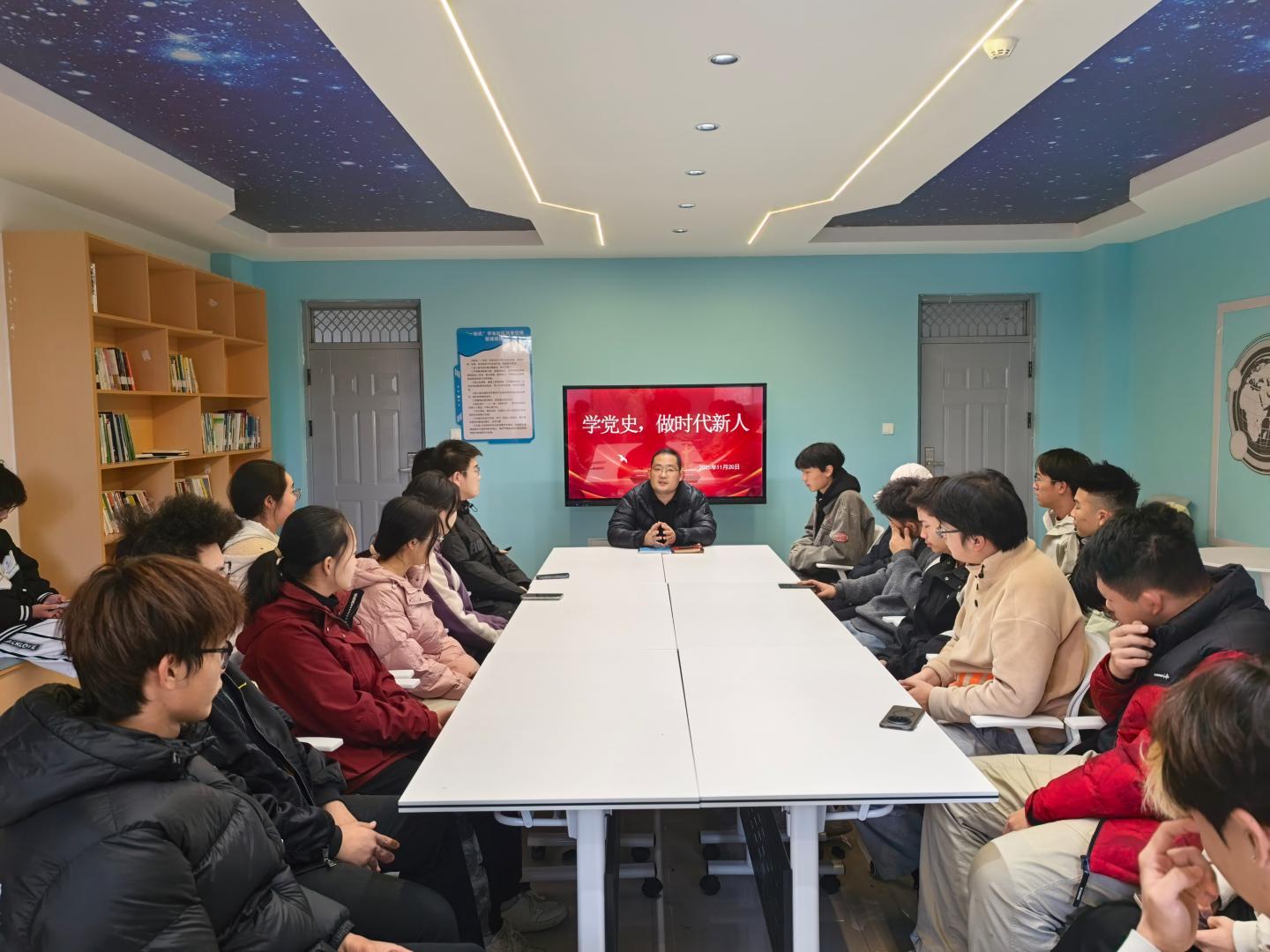 为深化“一站式”员工社区育人功能,引导青年员工从党史中汲取奋进力量,11月20日,太阳成集团tyc122cc以“学党史 做时代新人”为主题,辅导员唐龙龙组织20余名员工代表在丹江校区18号员工公寓“寓”见“悦”创空间开展沉浸式主题教育活动,让红色基因融入青春血脉,让初心使命照亮成长之路。
