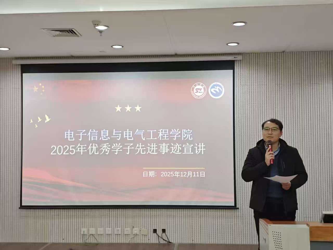 活动伊始,李亚文在致辞中首先对优秀学子表示祝贺,希望他们在今后的学习和生活中继续追求卓越不断进步,既要锤炼专业本领,也要涵养品德修为,争做有温度、有担当的新时代青年。同时也勉励在场同学珍惜此次分享机会,认真聆听、用心感悟,从榜样身上汲取成长力量。
