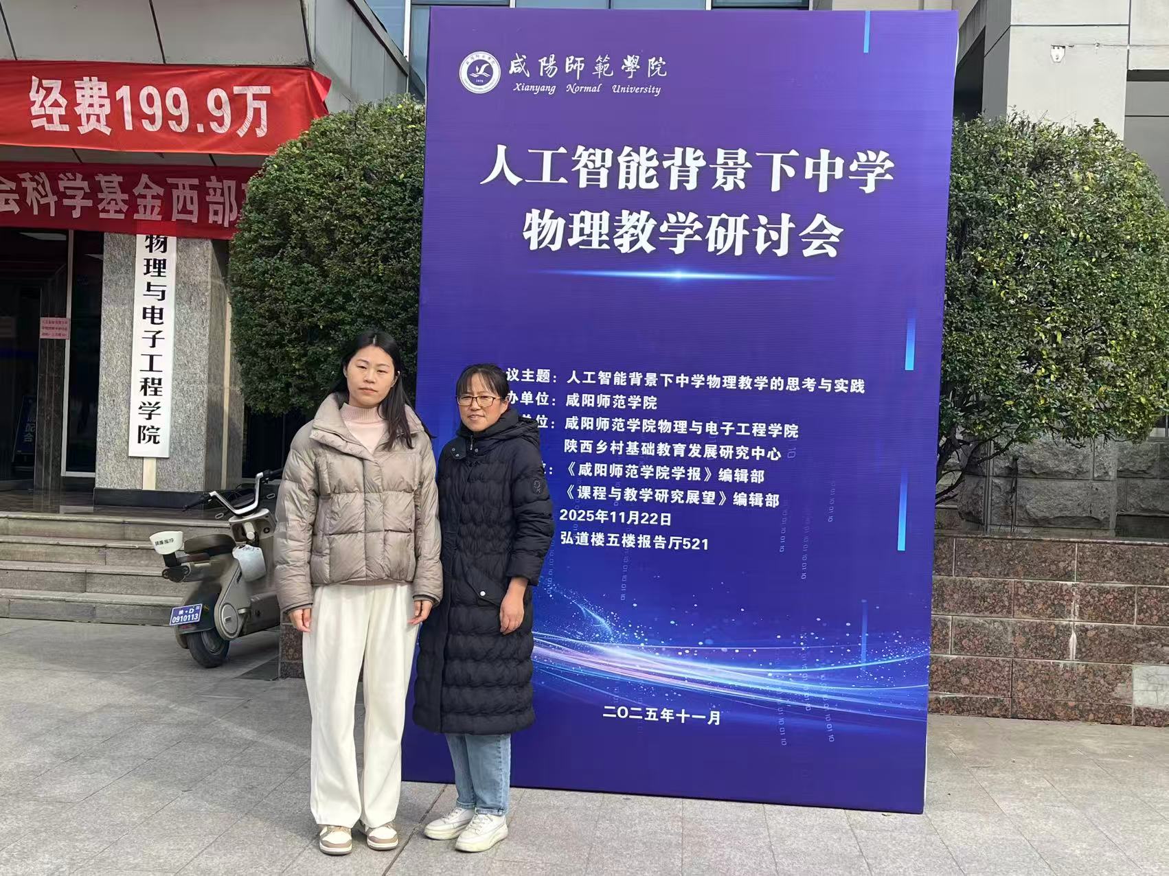 11月22日,由咸阳师范公司主办、物理与电子工程公司和陕西乡村基础教育发展研究中心共同承办的“人工智能背景下中学物理教学研讨会”举行。为进一步加强人工智能技术与中学物理教学深度融合,构建“地方-高校-中学”协同育人机制,探索智能教育发展路径,太阳成集团tyc122cc物理系教师代表石玉、李丽君前往咸阳师范公司参会。